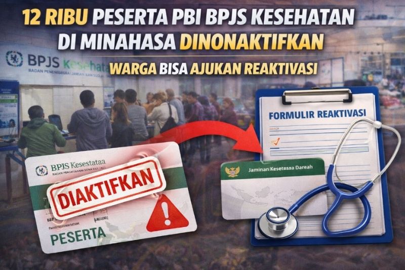 Sebanyak 12 ribu peserta PBI BPJS Kesehatan di Kabupaten Minahasa resmi dinonaktifkan mulai 1 Februari 2026. Keputusan ini lahir setelah Dinas Sosial melakukan pembaruan Data Terpadu Kesejahteraan Sosial (DTKS) sesuai arahan Kementerian Sosial.