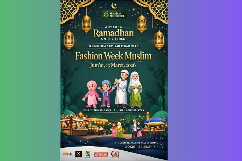 Kejaksaan Negeri Bitung menggelar Adhyaksa Ramadhan On The Street pada 13 Maret 2026 dengan Fashion Week Muslim sebagai daya tarik utama, terbuka bagi masyarakat dari berbagai usia.