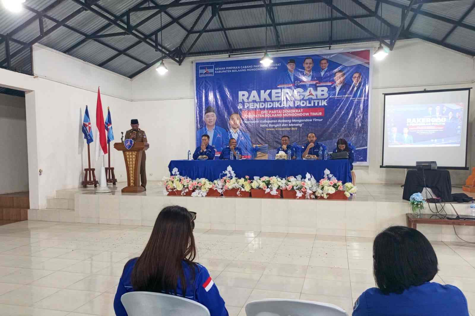Bupati Bolaang Mongondow Timur (Boltim) menghadiri sekaligus membuka secara resmi Rapat Kerja Cabang (Rakercab) dan Pendidikan Politik Dewan Pimpinan Cabang (DPC) Partai Demokrat Boltim. Kegiatan tersebut berlangsung di Café Goba Molunow, Kecamatan Mooat, Selasa (16/12/2025) sore.