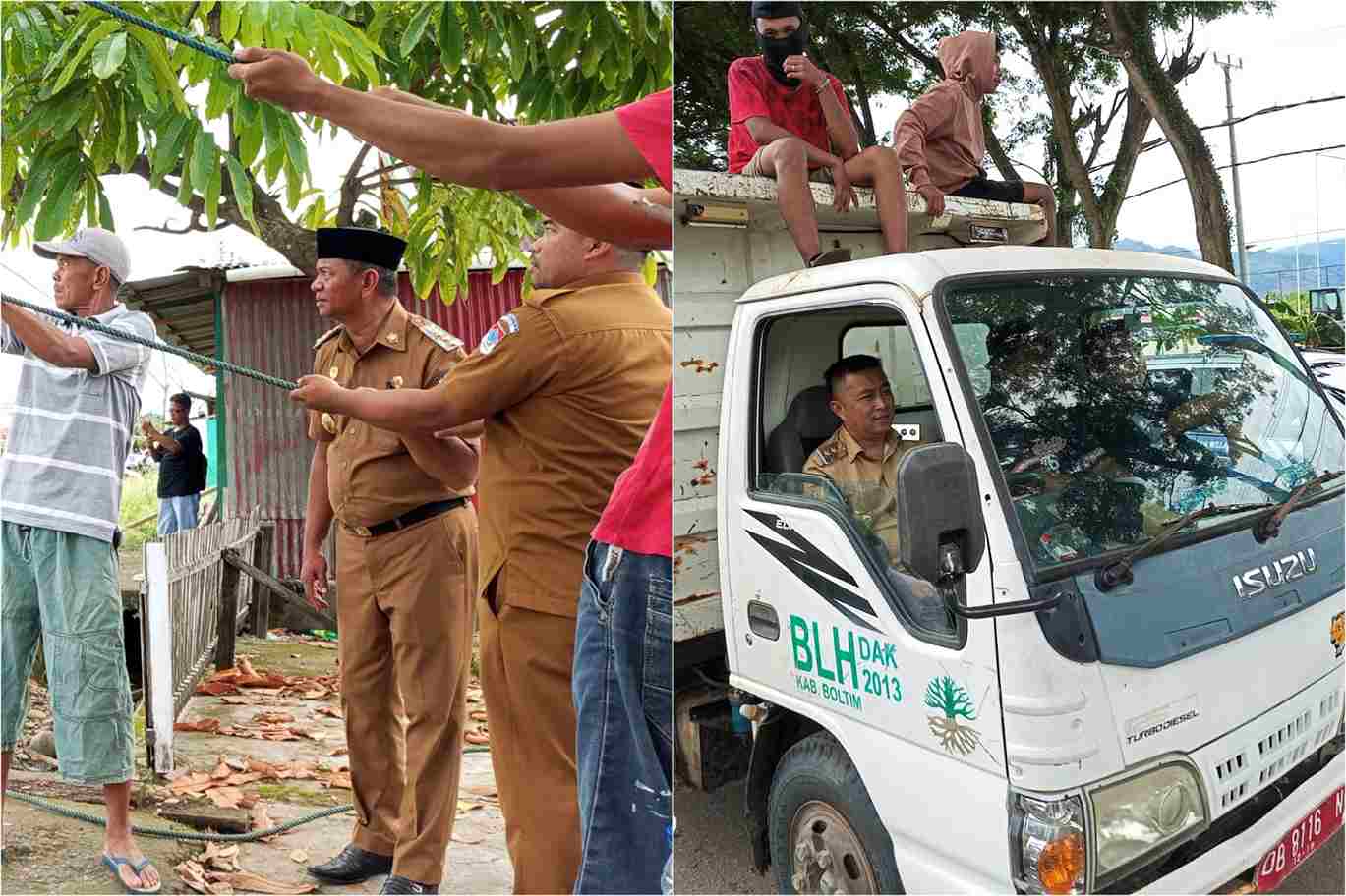 Di lapangan, bupati dan wabup tidak sekadar memantau. Bupati Oskar Manoppo terlihat ikut mengangkat dan memindahkan ranting pohon. Ia juga bergabung bersama petugas menarik cabang pohon menggunakan tali agar arah rebahannya tidak menimpa bangunan warga di sekitar jalan.