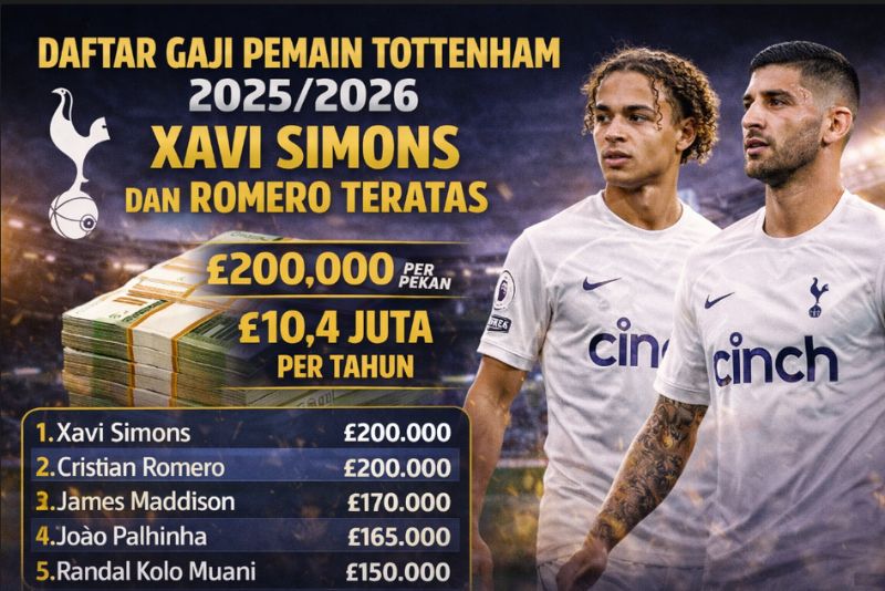 Tottenham Hotspur kembali menegaskan statusnya sebagai salah satu klub terkaya di Inggris. Pada musim 2025/2026, Spurs mengalokasikan anggaran besar untuk gaji pemain, dengan beberapa nama menerima bayaran fantastis hingga ratusan ribu poundsterling per pekan.