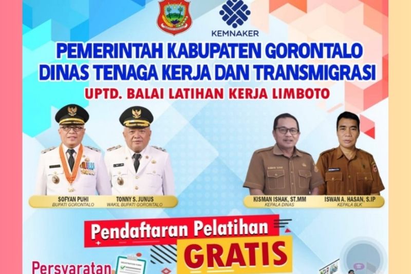Pemerintah Kabupaten Gorontalo terus mendorong peningkatan kualitas tenaga kerja melalui pelatihan kerja gratis BLK Limboto. Program ini dilaksanakan oleh UPTD Balai Latihan Kerja (BLK) Limboto di bawah koordinasi Dinas Tenaga Kerja dan Transmigrasi Kabupaten Gorontalo.