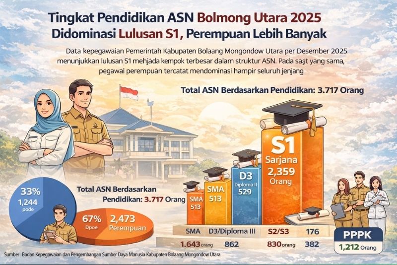 Tingkat Pendidikan ASN Bolmong Utara 2025 Didominasi Lulusan S1, Perempuan Lebih Banyak